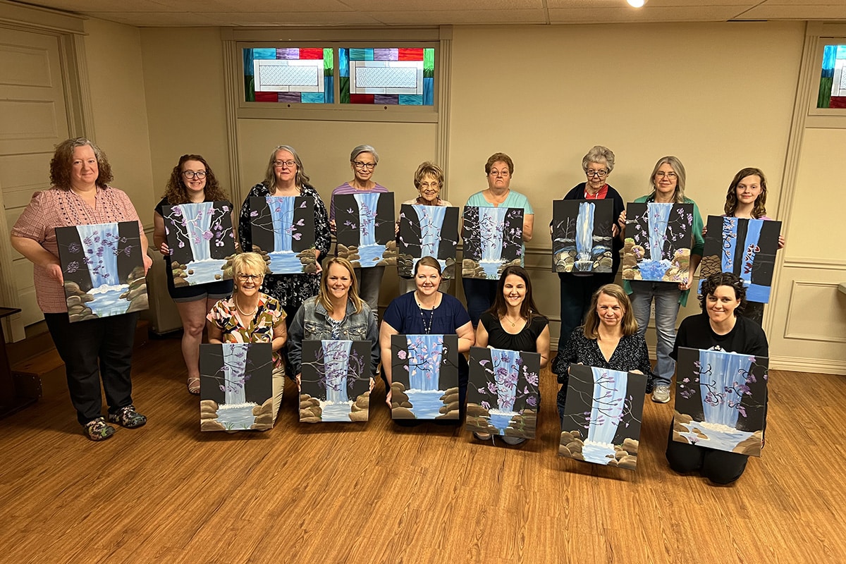 Periodically, PUMC will schedule a guided group painting class working with Amber from Ariel Inspired, LLC, a local social painting business in Painesville. Classes will be scheduled 4-5 weeks in advance and the design announced at that time. Those who wish to participate in the class sign up in the church office and pay for their session at the time of RSVP. Typically, paint classes on site at PUMC will also include lemonade and light refreshments to sustain painters during their session. Paint classes that have been scheduled are announced through our church email platform. Persons who miss a pre-paid class may make an appointment to visit the Ariel Inspired, LLC studio and pick up their paints to complete their canvas at home. Typically, PUMC offers 2-3 guided paint classes on site per year.