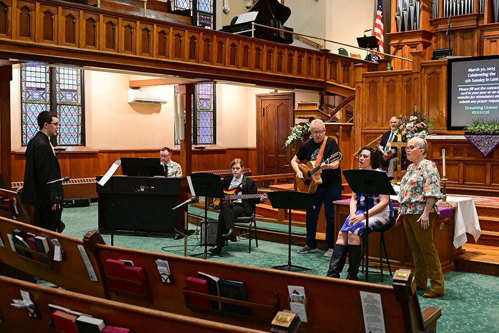 Our Praise Band was just formed in early 2025 and includes vocalists and instrumentalists. This group typically meets after worship every other Sunday and performs at periodic intervals during our 8:30am and 10am Sunday worship services. Newcomers interested in joining may contact the church office for upcoming practice times and locations! Conducted by Riley Strickland.